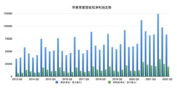 目前可获取的苹果最新财报数据是 2022 财年第三季度 (日历年第二季度)。第三财季是苹果的淡季,业绩通常是一年中最差的或者只能说差强人意。