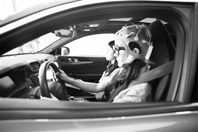 图为工作人员在座舱交互实验室进行测试。受访者供图