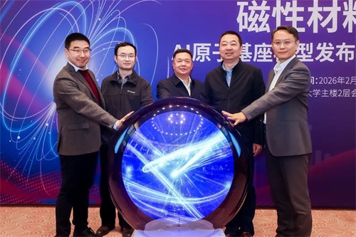 此次发布的磁性材料AI原子基座模型,首次解释了不同原子和磁矩构型的演化机制,并以此为基础搭建起全球首个宽温压域磁性材料数据库。该数据库囊括47种合金元素、6000余种磁性合金体系、70余万组非平衡态与非共线磁性材料数据,模型可在微纳米尺度同时精准预测原子排布与磁矩转动,稳定覆盖0-1000K温度、10GPa压强的宽域温压工况。