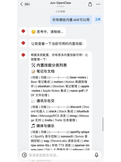 说回正题,这两天持续在摸索openclaw用法,它的能力都是基于skill来实现的,skill是agent的可执行能力单元,就像一个个干活机器人,LLM会将你的对话指令匹配到合适的skill,然后开始干活。