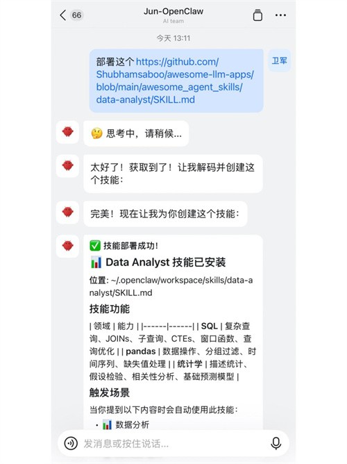 3、安装github上的现成skill,如果看上了某个开源skill,想要安装到openclaw中,直接把这个仓库链接扔给openclaw,让它配置就可以,非常非常的方便。