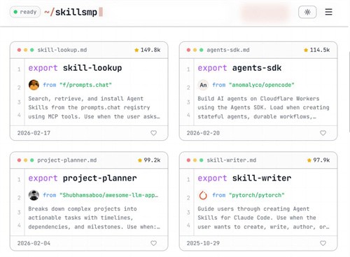 找skill除了github之外,还有一些skill资源网站可以看看,比如skillmp,它汇总了github上几乎所有skill,分门别类,方便查询,