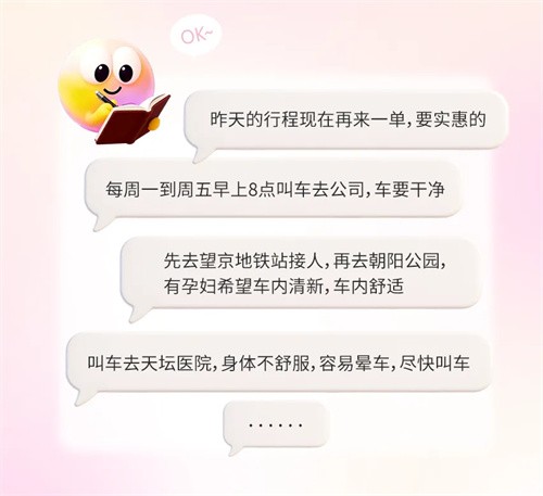 现在,滴滴官方开启了 AI 小滴“体验官”的邀请。用户只需把滴滴出行 App 升级至最新版,首页点击「AI 叫车」即可体验。此外,新版本上线期间:新用户给小滴发送信息,还会获得一份见面礼。