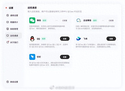 新版本持续优化微信生态体验,同时打通企业微信、QQ、飞书、钉钉等多平台远控通道,进一步拓展AI协作入口。