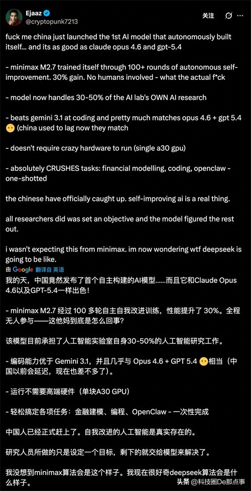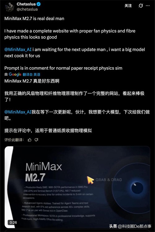 科技圈的那点事,从来都是概念先行、落地滞后。M2.7的自我进化能力到底有多少水分,还需要更多第三方测试来验证。