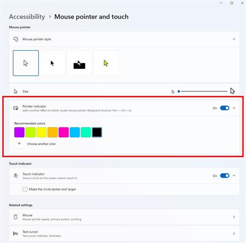 无障碍功能方面,微软在本次预览版更新中,为了提升视觉障碍用户的操作效率,重新启用了“指针指示器”(Pointer Indicator)无障碍功能。