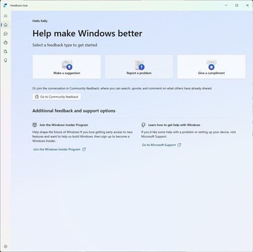 在优化反馈方面,微软重新设计了“反馈中心”(Feedback Hub),新版应用采用了现代化的 UI 界面,并大幅简化了操作流程。IT之家援引博文介绍,用户现在可以通过统一的模板提交反馈,并在导航栏直接查看“我的反馈”与“社区反馈”。