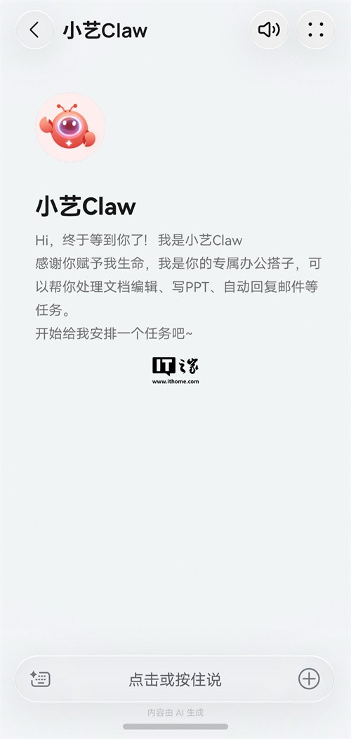 据介绍,小艺 Claw 支持开箱即用,可一键唤醒;支持自我学习、深度记忆,可不断进化;支持多端协同,可与鸿蒙多设备互动,如便捷管理手机的日程、备忘录等;支持端云协同,拥有鸿蒙系统级安全加固。
