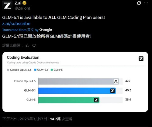 3 月 27 日消息,智谱官方现已公布 GLM-5.1 模型,所有 Coding Plan 用户(Max、Pro 和 Lite)均可调用。