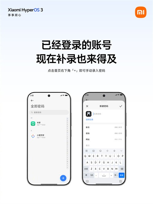 3 月 30 日消息,今天上午,小米澎湃 OS 官微宣布,小米澎湃 OS3 上新密码 App。