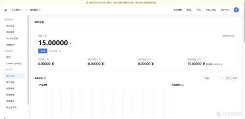 注册后进用户中心完成个人实名,到账 15 元,有效期约 3 个月。可以用 Kimi-K2.5 和 Kimi-K2-thinking。