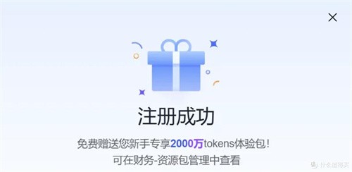 注册完成后平台自动发 2000 万 Tokens 新人包,有效期 3 个月。