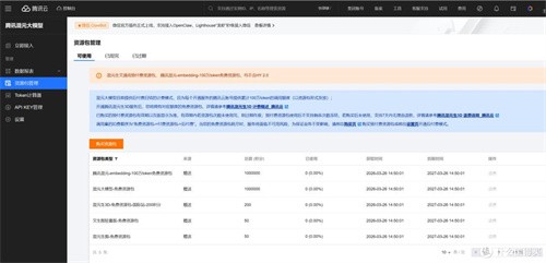 资源包里有 100 万 Tokens 的混元大模型包、100 万 Tokens 的混元 Embedding 包,有效期一年。