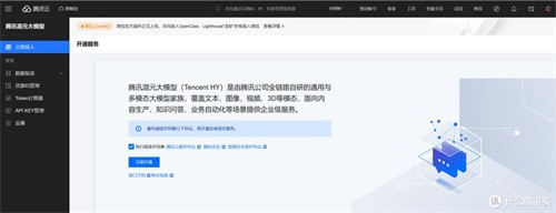 官网完成实名,进控制台切换到 腾讯混元大模型,点"立即开通"。