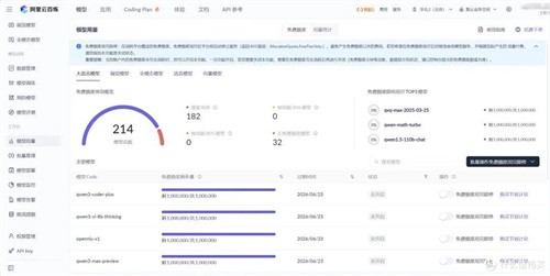 登录百炼控制台,进"模型用量 - 免费额度"标签,能看到每个模型的剩余额度和到期时间。