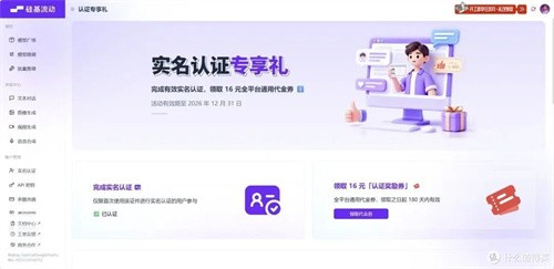 首次实名认证到账 16 元通用代金券,有效期 180 天。