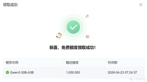 新用户首次登录送 100 万 Tokens,支持 Qwen3-30B-A3B,有效期一个月。